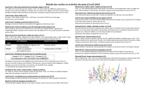 - Activités de loisir, de création artistique et sorties